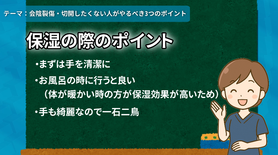 まず大切なのは、会陰部分の保湿です。